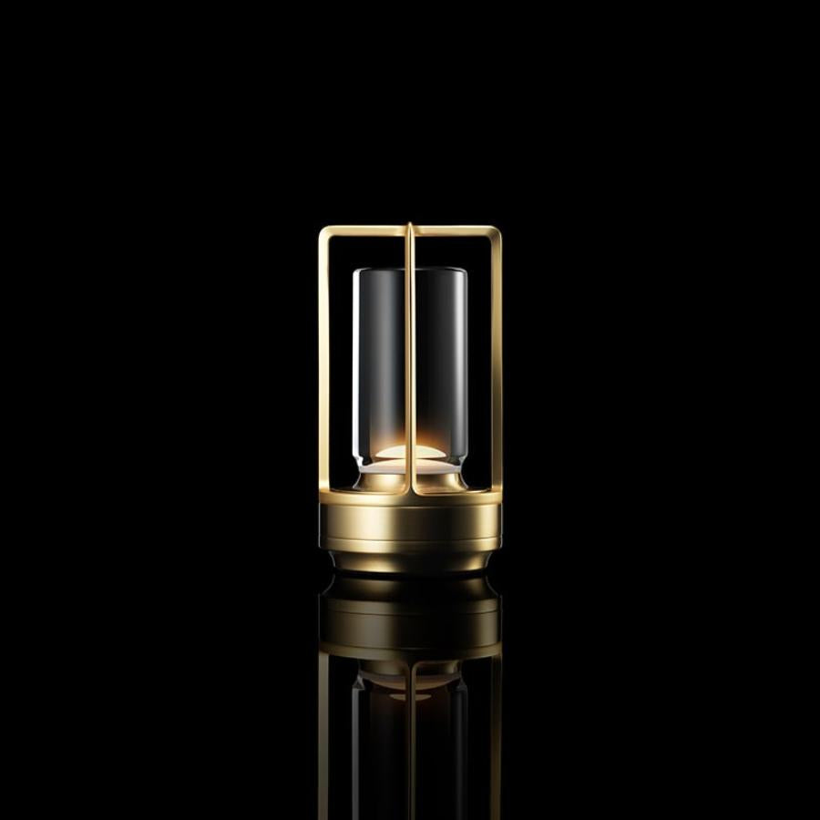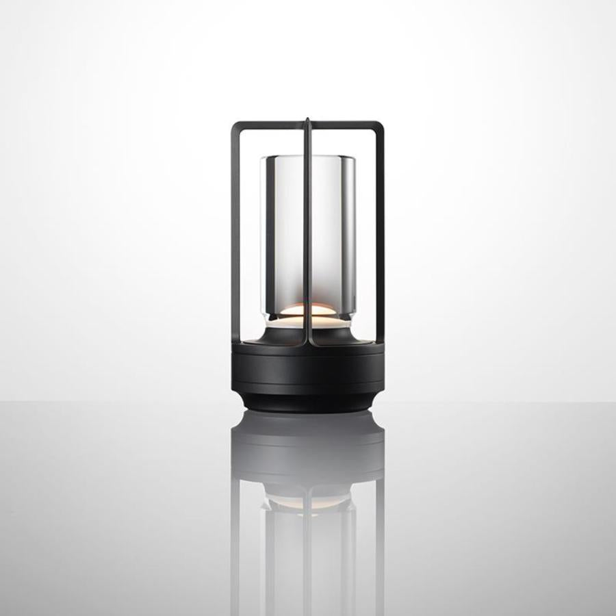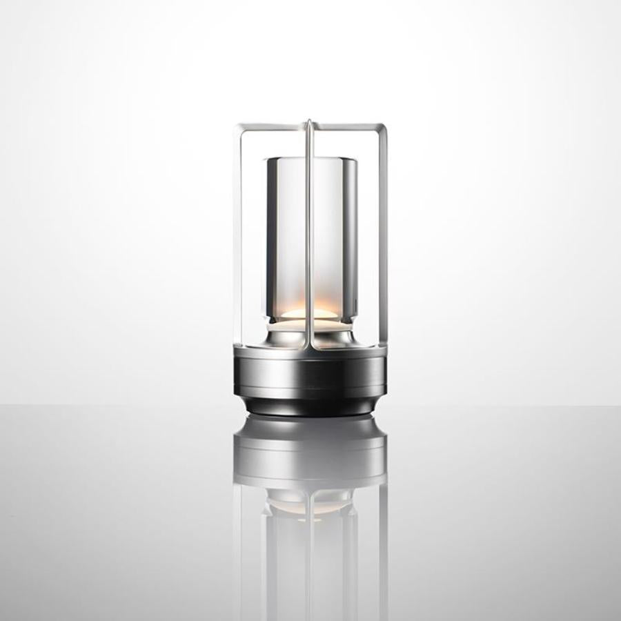 すべてのパーツを金属の塊から削り出して作られた、洗練されたテーブルランプ。