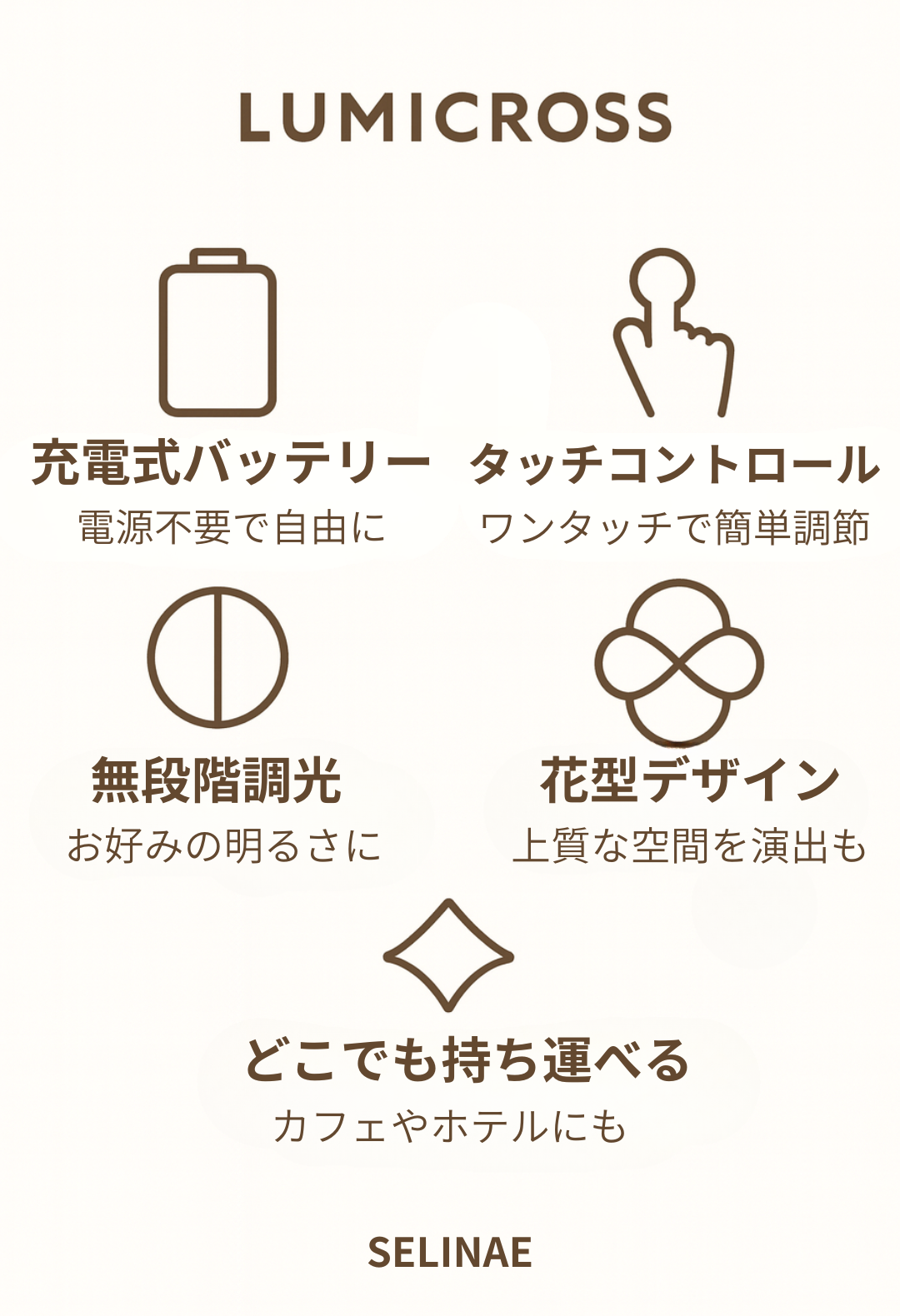 夜のリラックスタイムや特別なひとときに、心地よい光をお楽しみください。